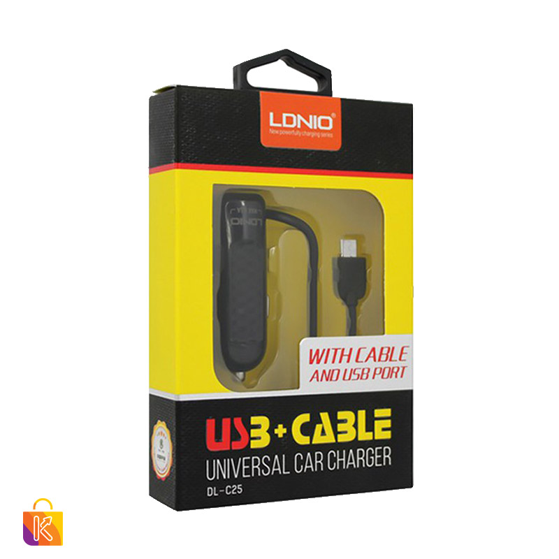 شارژر فندکی الدینیو مدل DL-C25 همراه با کابل میکرو